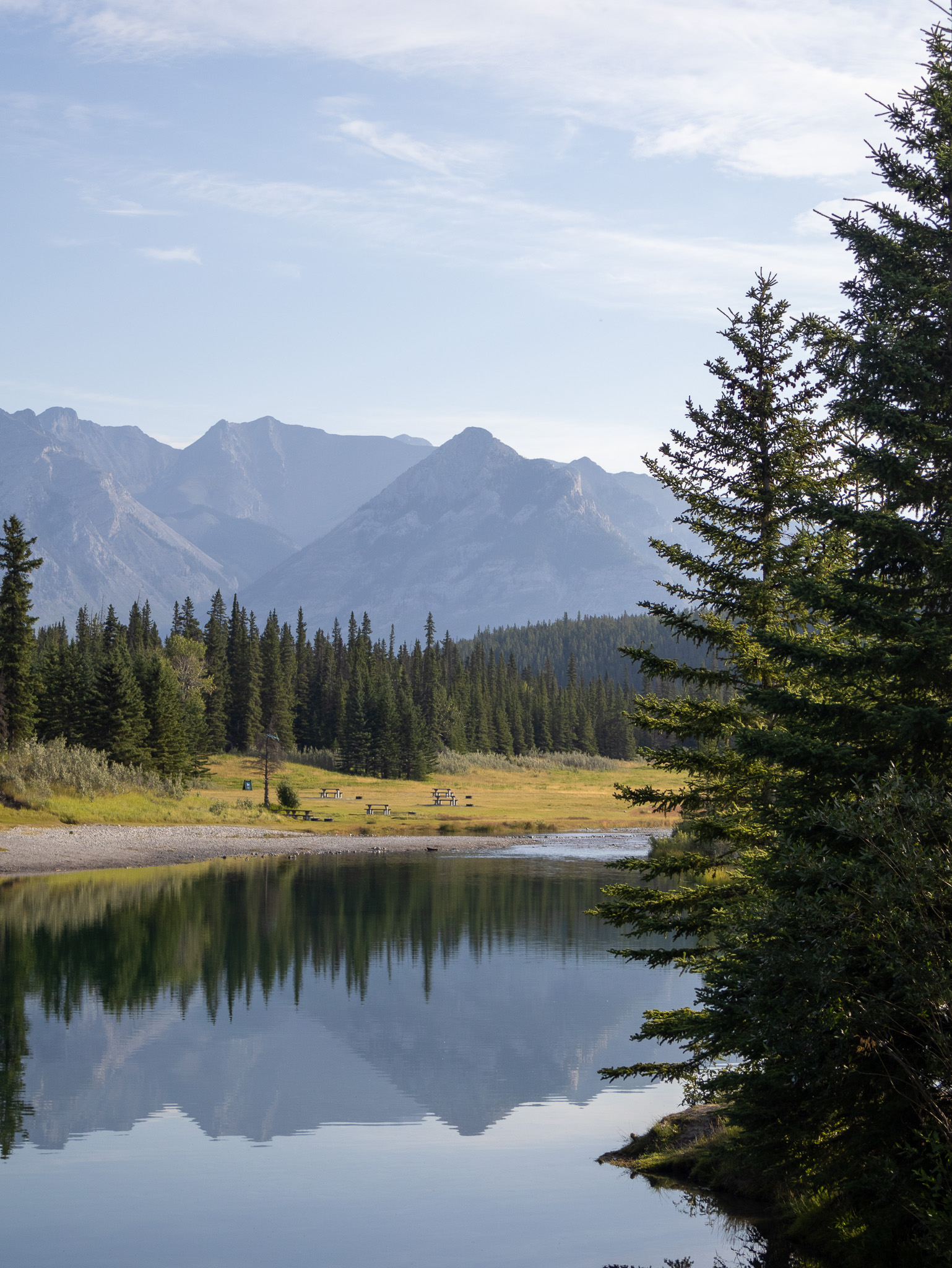 We started the day at Rocky Mountain Bagel Company in Canmore before taking Route 1 to the Vermillion Lakes viewpoint. This area was quiet first thing in the morning. We then drove to the Lake Minnewanka Scenic Drive Loop which included the following stops which follow the Scenic Drive in a clockwise loop starting at Cascade Ponds: