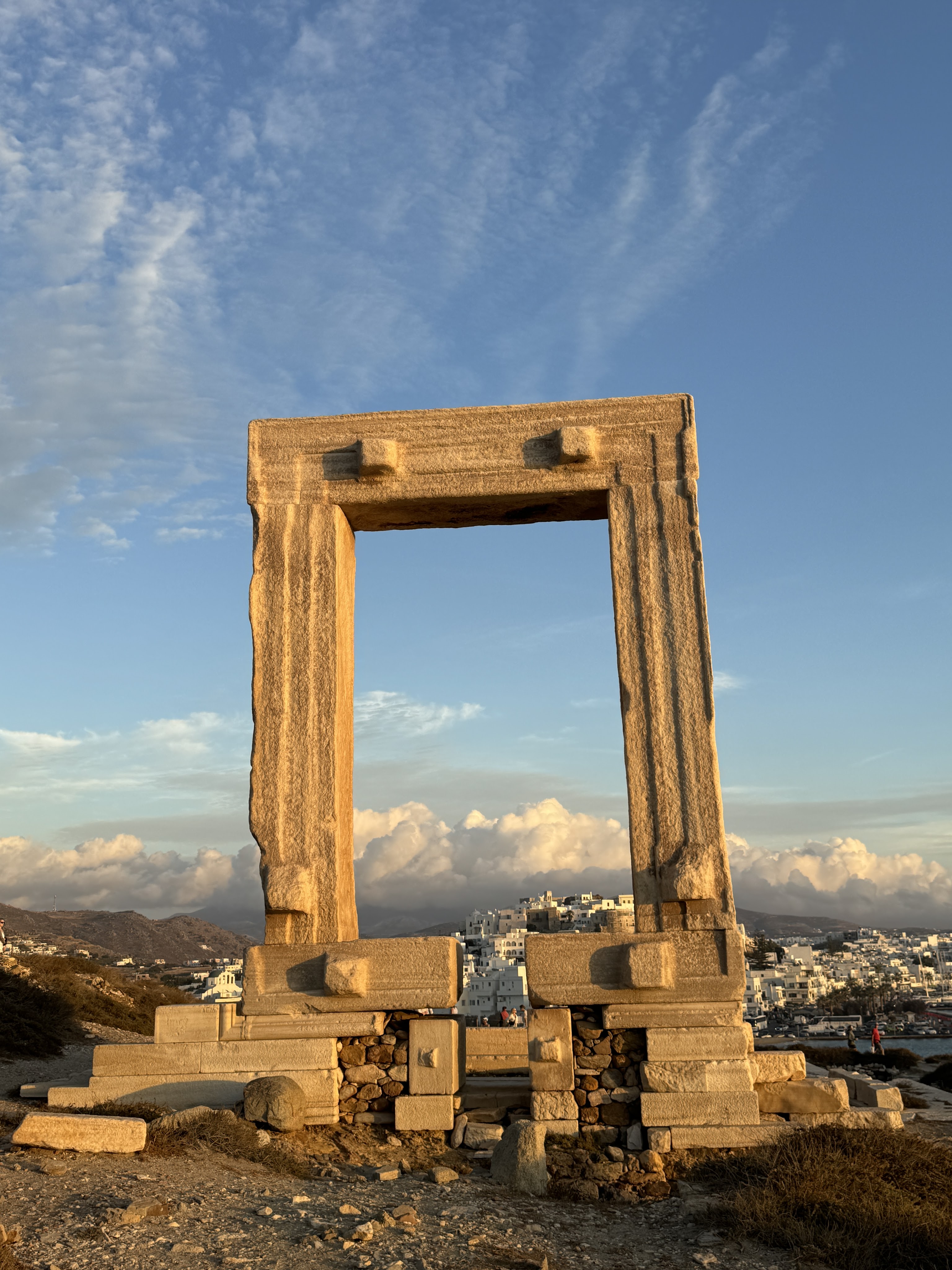 We started our first full day in Naxos by going to Trata at Agios Georgios beach where we were provided with 2 cushioned beach bed-style chairs and 2 towels for $30 per person. We stayed there from about 10am to 2pm and enjoyed a lunch in their cabana. We headed back to our hotel to freshen up, picked up some coffee and pastries at Sitari Bakery, and began exploring Naxos City in the late afternoon. We started by walking through the Old Town Market below the city center castle, and passed by the statue of Aphrodite on our way to the Temple of Apollo at sunset. We stopped for a lovely dinner on our way back to our room at Taverna Naxos. All of the best dinner spots are right on the water in Naxos, and it seems you can’t go wrong with which place you pick for any meal of the day.